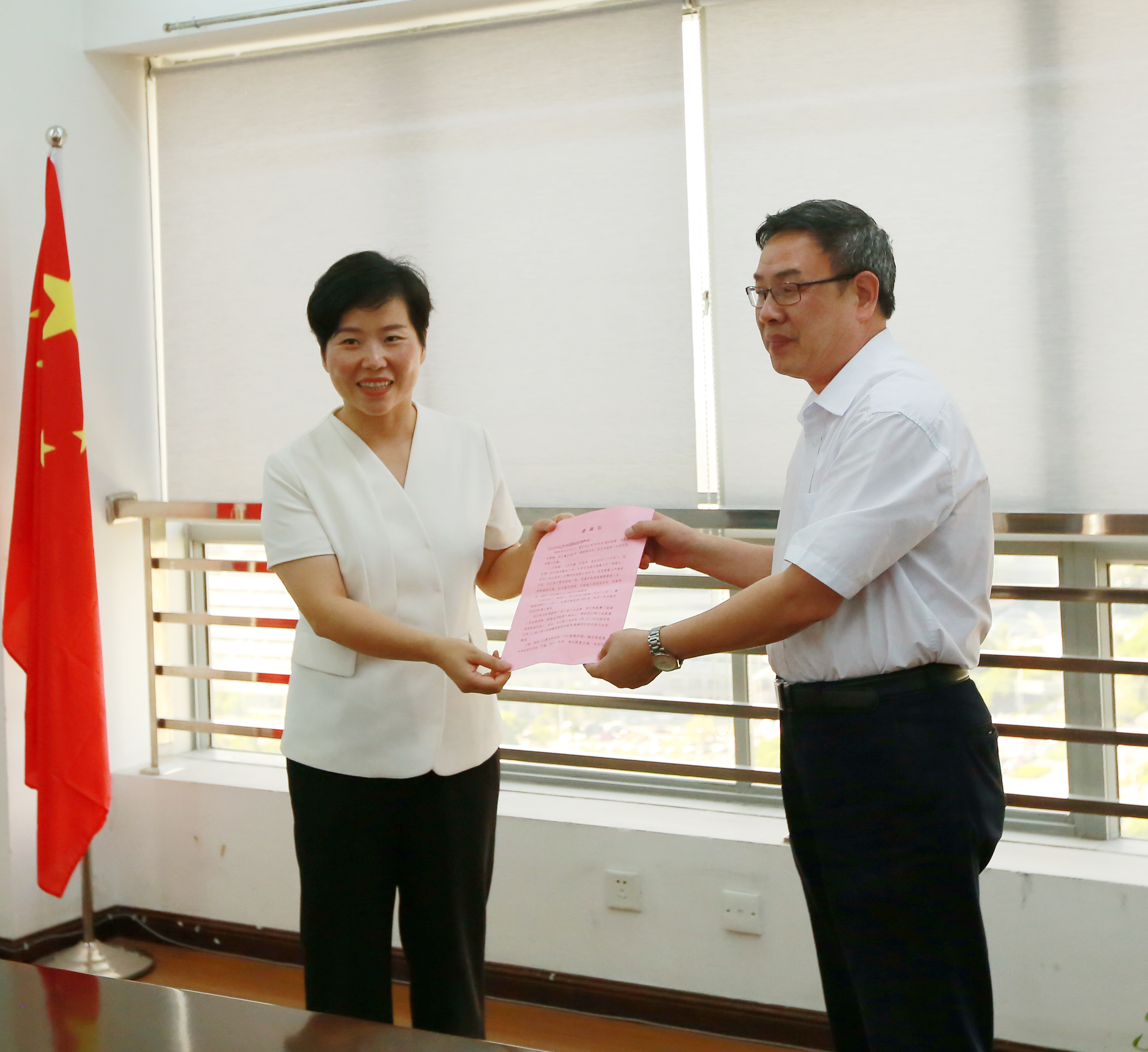 【洪水無情人有情】臨海市給臺州高速集團 送來錦旗和感謝信 今天下午,臨海市市長王丹代表臨海市委、市政府向臺州高速集團送來了錦旗和感謝信,感謝在防御第9號臺風“利奇馬”及災后重建過程中,臺州高速集團給予的大力支援。