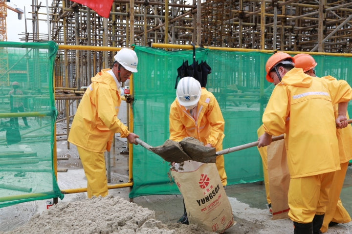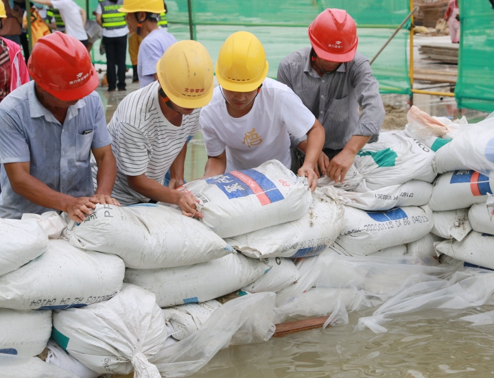 圖為模擬建筑工地面對洪水倒灌的現場應急搶險