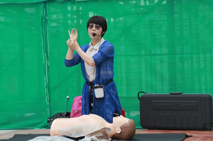 圖為心肺復蘇急救演練